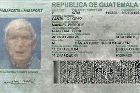 El pasaporte fue obtenido en 2004 en Chiquimula, cerca de la frontera con Honduras y según el jefe de inmigración de Guatemala fue expedido a nombre de Manuel Enrique Castillo López que presentó una cédula emitida en San Antonio Huista, Guatemala, en la frontera con México.