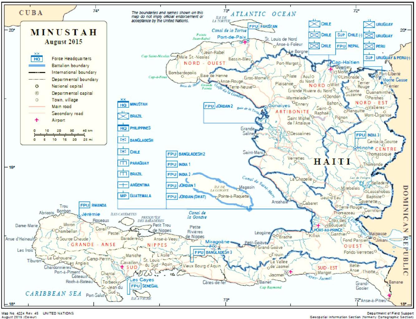 Pays fournissant du personnel militaire et des contingents à la Mission des Nations Unies pour la stabilisation en Haïti au 17 août 2015