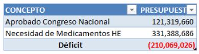 Presupuesto de Medicamentos para el HE