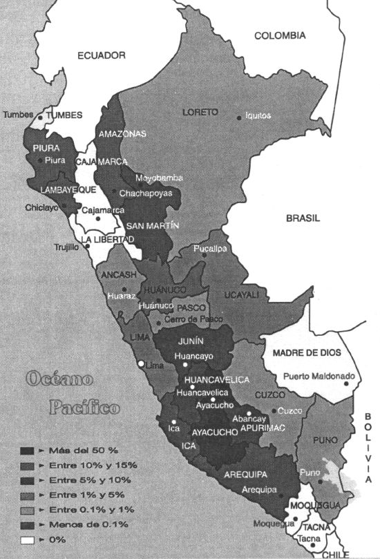 El distrito judicial de Ayacucho arrojó en 1988 el índice más alto de denuncias de desapariciones forzadas a nivel nacional con 270 denuncias. En segundo lugar, el distrito judicial de Lima, con 211 denuncias en el año de 1984, y en tercer lugar el distrito judicial de Huánuco con 136 denuncias en el año de 1991.